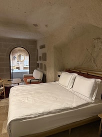Kesinlikle 5 yıldızlı otel konforundaydı. Bütün ekip girişimizden çıkışımıza kadar her şeyimizle tek tek ilgilenip yardımcı oldu. Kahvaltı çok güzeldi, son gece otelde akşam yemeği yedik o da çok lezzetliydi. Serpme kahvaltı var ama siz ne yemek isterseniz sorup getiriyorlar. Odalarda makyaj temizleme misel suyundan hijyen kitlerine kadar vardı siz düşünün. Odalar zaten son derece şık döşenmiş, büyüklüğü de konforu da çok iyiydi biz hiç sıkışıklık yaşamadık ki standart odaya 2 büyük valizle gitmiştik. Otel konum olarak Uçhisar’da, sabah kalktığınızda otelin terasından balonları izleyebilirsiniz. Ancak balon kalkış noktası Göreme, yani aralarında arabayla 10 dk kadar var. Daha yakından görmek isterseniz elbette Aşıklar tepesine gidip izleyebilirsiniz ama biz sabahın köründe kalkmamak için otelin terasından izlemeyi tercih ettik. :) Uçhisar Kalesi’ne yürüme mesafesinde, odalar da gayet sıcaktı biz ısıtmayla ilgili sorun yaşamadık. İlgileri için bilhassa Ali, Can ve Talha Bey’lere teşekkür ediyorum.